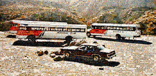 “Google Street View es una aplicación online que contiene una representación tridimensional virtual de espacios a través del mundo. Durante ese recorrido, como en el mundo real, utilicé una cámara de formato medio para capturar paisajes de Ciudad Juárez y sus alrededores”, explica el autor. “Sobre la base de esas fotografías, una vez digitalizadas, compuse el mosaico usando una aplicación. Para la base del mosaico descargué, masivamente, imágenes de internet atinentes al tema de la guerra contra las drogas”.