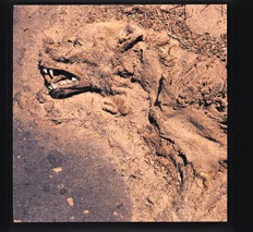 El cadáver de un animal impregnando la tierra seca, tan seca que parece asfalto con una explosión de arena, pelo y dientes. ¿Será una imagen horrible? ¿Alguien necesitará buscarle su belleza para poder verla? ¿Tendrá mucho tiempo de muerto el perro? ¿Por qué este tipo le saca una foto a esto?
